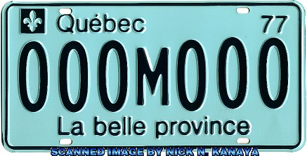 REFERENCE NUMBER: QC-1977FIRST YEAR OF ISSUE: 1976 PLATE TYPE: GENERAL ISSUE BASE MATERIAL: ALUMINUM REFLECTORIZATION: NON-REFLECTIVE VALIDATION: NO DECALS USED ON PLATE NOTES: DARK BLUE SERIAL ON LIGHT BLUE BASE