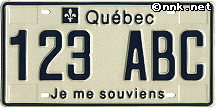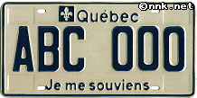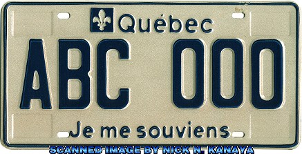 REFERENCE NUMBER: QC-1983NDFIRST YEAR OF ISSUE: 1983 PLATE TYPE: GENERAL ISSUE BASE MATERIAL: ALUMINUM REFLECTORIZATION: PARTIAL - BACKGROUND ONLY VALIDATION: NO DECALS USED ON PLATE AFTER 1994 NOTES: BLUE SERIAL ON REFLECTIVE WHITE BASE