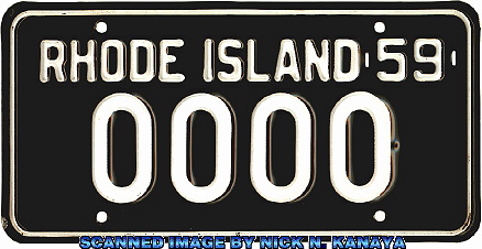 REFERENCE NUMBER: RI-1959FIRST YEAR OF ISSUE: 1958 PLATE TYPE: GENERAL ISSUE BASE MATERIAL: ALUMINUM REFLECTORIZATION: NON-REFLECTIVE VALIDATION: 1 DECAL ON BOTH PLATES NOTES: WHITE SERIAL ON BLACK BASE