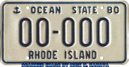 REFERENCE NUMBER: RI-1980FIRST YEAR OF ISSUE: 1979 PLATE TYPE: GENERAL ISSUE BASE MATERIAL: ALUMINUM REFLECTORIZATION: PARTIAL - BACKGROUND ONLY VALIDATION: 1 DECAL ON BOTH PLATES NOTES: BLUE SERIAL ON REFLECTIVE WHITE BASE