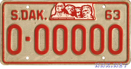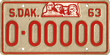 REFERENCE NUMBER: SD-1963FIRST YEAR OF ISSUE: 1963 PLATE TYPE: GENERAL ISSUE BASE MATERIAL: STEEL REFLECTORIZATION: PARTIAL - BACKGROUND ONLY VALIDATION: NO DECALS USED ON PLATE NOTES: RED SERIAL ON REFLECTIVE WHITE BASE