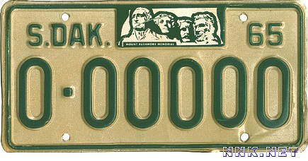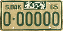 REFERENCE NUMBER: SD-1965FIRST YEAR OF ISSUE: 1965 PLATE TYPE: GENERAL ISSUE BASE MATERIAL: STEEL REFLECTORIZATION: PARTIAL - BACKGROUND ONLY VALIDATION: NO DECALS USED ON PLATE NOTES: GREEN SERIAL ON REFLECTIVE WHITE BASE