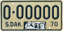 REFERENCE NUMBER: SD-1970FIRST YEAR OF ISSUE: 1970 PLATE TYPE: GENERAL ISSUE BASE MATERIAL: STEEL REFLECTORIZATION: PARTIAL - BACKGROUND ONLY VALIDATION: NO DECALS USED ON PLATE NOTES: BLUE SERIAL ON REFLECTIVE WHITE BASE