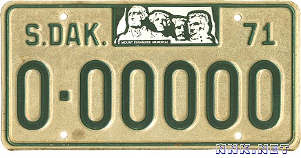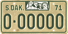 REFERENCE NUMBER: SD-1971FIRST YEAR OF ISSUE: 1971 PLATE TYPE: GENERAL ISSUE BASE MATERIAL: STEEL REFLECTORIZATION: PARTIAL - BACKGROUND ONLY VALIDATION: NO DECALS USED ON PLATE NOTES: GREEN SERIAL ON REFLECTIVE WHITE BASE