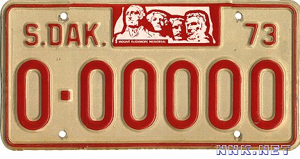 REFERENCE NUMBER: SD-1973FIRST YEAR OF ISSUE: 1973 PLATE TYPE: GENERAL ISSUE BASE MATERIAL: STEEL REFLECTORIZATION: PARTIAL - BACKGROUND ONLY VALIDATION: NO DECALS USED ON PLATE NOTES: RED SERIAL ON REFLECTIVE WHITE BASE