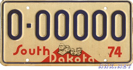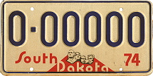 REFERENCE NUMBER: SD-1974FIRST YEAR OF ISSUE: 1974 PLATE TYPE: GENERAL ISSUE BASE MATERIAL: STEEL REFLECTORIZATION: PARTIAL - BACKGROUND ONLY VALIDATION: NO DECALS USED ON PLATE NOTES: BLUE SERIAL ON REFLECTIVE GRAPHIC BASE