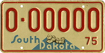 REFERENCE NUMBER: SD-1975FIRST YEAR OF ISSUE: 1975 PLATE TYPE: GENERAL ISSUE BASE MATERIAL: STEEL REFLECTORIZATION: PARTIAL - BACKGROUND ONLY VALIDATION: NO DECALS USED ON PLATE NOTES: RED SERIAL ON REFLECTIVE GRAPHIC BASE