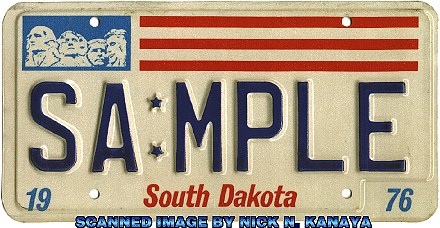 REFERENCE NUMBER: SD-1976FIRST YEAR OF ISSUE: 1976 PLATE TYPE: GENERAL ISSUE BASE MATERIAL: ALUMINUM OR STEEL REFLECTORIZATION: PARTIAL - BACKGROUND ONLY VALIDATION: NO DECAL USED FOR 1976 NOTES: BLUE SERIAL ON REFLECTIVE GRAPHIC BASE