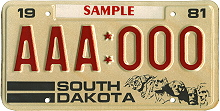 REFERENCE NUMBER: SD-1981FIRST YEAR OF ISSUE: 1980 PLATE TYPE: GENERAL ISSUE BASE MATERIAL: STEEL REFLECTORIZATION: PARTIAL - BACKGROUND ONLY VALIDATION: 1 OR MORE DECALS ON EACH PLATE NOTES: RED SERIAL ON REFLECTIVE GRAPHIC BASE