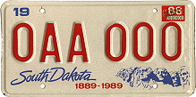 REFERENCE NUMBER: SD-1989FIRST YEAR OF ISSUE: 1987 PLATE TYPE: GENERAL ISSUE BASE MATERIAL: STEEL REFLECTORIZATION: PARTIAL - BACKGROUND ONLY VALIDATION: 1 DECAL ON EACH PLATE NOTES: RED SERIAL ON REFLECTIVE GRAPHIC BASE