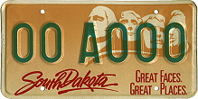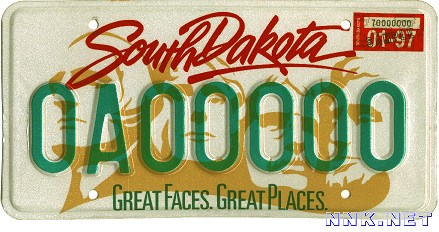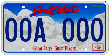 FIRST YEAR OF ISSUE: 2006 PLATE TYPE: GENERAL ISSUE BASE MATERIAL: ALUMINUM REFLECTORIZATION: FULLY REFLECTIVE VALIDATION: MO/YR DECAL NOTES: BLUE SURFACE PRINTED SERIAL ON MOUNT RUSHMORE GRAPHIC BASE