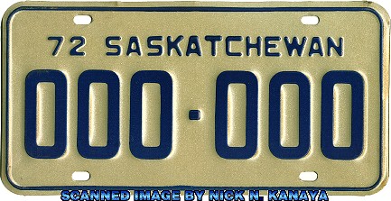 REFERENCE NUMBER: SK-1972FIRST YEAR OF ISSUE: 1971 PLATE TYPE: GENERAL ISSUE BASE MATERIAL: STEEL REFLECTORIZATION: PARTIAL - BACKGROUND ONLY VALIDATION: NO DECALS USED ON PLATE NOTES: BLUE SERIAL ON REFLECTIVE WHITE BASE