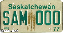 REFERENCE NUMBER: SK-1977FIRST YEAR OF ISSUE: 1976 PLATE TYPE: GENERAL ISSUE BASE MATERIAL: STEEL REFLECTORIZATION: PARTIAL - BACKGROUND ONLY VALIDATION: 2 DECALS ON EACH PLATE NOTES: GREEN SERIAL ON REFLECTIVE WHITE BASE