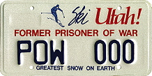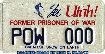 REFERENCE NUMBER: UT-1986ND-POWFIRST YEAR OF ISSUE: 1985 PLATE TYPE: OPTIONAL ISSUE BASE MATERIAL: ALUMINUM REFLECTORIZATION: PARTIAL - BACKGROUND ONLY VALIDATION: 2 OR 3 DECALS ON REAR PLATE NOTES: FORMER P.O.W. ISSUE