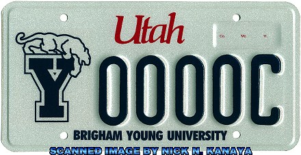 REFERENCE NUMBER: UT-1993ND-BYUFIRST YEAR OF ISSUE: 1993 PLATE TYPE: COLLEGIATE ISSUE BASE MATERIAL: ALUMINUM REFLECTORIZATION: PARTIAL - BACKGROUND ONLY VALIDATION: 3 DECALS ON REAR PLATE NOTES: BRIGHAM YOUNG UNIVERSITY