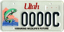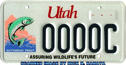 REFERENCE NUMBER: UT-1993ND-CTTFIRST YEAR OF ISSUE: 1993 PLATE TYPE: OPTIONAL ISSUE BASE MATERIAL: ALUMINUM REFLECTORIZATION: PARTIAL - BACKGROUND ONLY VALIDATION: 3 DECALS ON REAR PLATE NOTES: WILDLIFE - CUTTHROAT TROUT