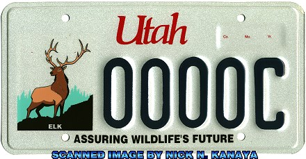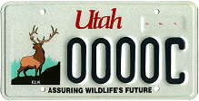 REFERENCE NUMBER: UT-1993ND-ELKFIRST YEAR OF ISSUE: 1993 PLATE TYPE: OPTIONAL ISSUE BASE MATERIAL: ALUMINUM REFLECTORIZATION: PARTIAL - BACKGROUND ONLY VALIDATION: 3 DECALS ON REAR PLATE NOTES: WILDLIFE - ELK