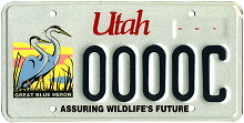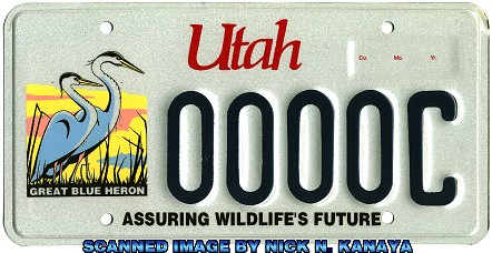 REFERENCE NUMBER: UT-1993ND-GBHFIRST YEAR OF ISSUE: 1993 PLATE TYPE: OPTIONAL ISSUE BASE MATERIAL: ALUMINUM REFLECTORIZATION: PARTIAL - BACKGROUND ONLY VALIDATION: 3 DECALS ON REAR PLATE NOTES: WILDLIFE - GREAT BLUE HERON