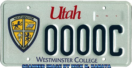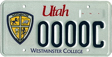 REFERENCE NUMBER: UT-1993ND-WCXFIRST YEAR OF ISSUE: 1993 PLATE TYPE: COLLEGIATE ISSUE BASE MATERIAL: ALUMINUM REFLECTORIZATION: PARTIAL - BACKGROUND ONLY VALIDATION: 3 DECALS ON REAR PLATE NOTES: WESTMINSTER COLLEGE