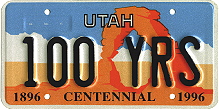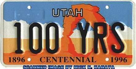 REFERENCE NUMBER: UT-1996-2FIRST YEAR OF ISSUE: 1994 PLATE TYPE: OPTIONAL THROUGH 1996 BASE MATERIAL: ALUMINUM REFLECTORIZATION: PARTIAL - BACKGROUND ONLY VALIDATION: 3 DECALS ON REAR PLATE NOTES: BLUE SERIAL ON REFLECTIVE GRAPHIC BASE
