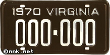 REFERENCE NUMBER: VA-1970FIRST YEAR OF ISSUE: 1970 PLATE TYPE: GENERAL ISSUE BASE MATERIAL: STEEL REFLECTORIZATION: NON-REFLECTIVE VALIDATION: NO DECALS USED ON PLATE NOTES: WHITE SERIAL ON BLACK BASE
