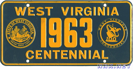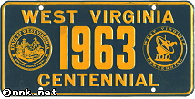 REFERENCE NUMBER: WV-1963-FPFIRST YEAR OF ISSUE: 1962 PLATE TYPE: BOOSTER PLATE BASE MATERIAL: STEEL REFLECTORIZATION: NON-REFLECTIVE VALIDATION: NO DECALS USED ON PLATE NOTES: WEST VIRGINIA CENTENNIAL CELEBRATION