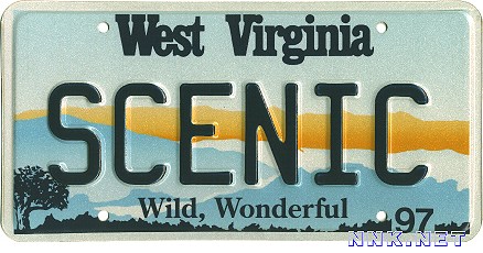 REFERENCE NUMBER: WV-1997-SCNFIRST YEAR OF ISSUE: 1996 PLATE TYPE: OPTIONAL ISSUE BASE MATERIAL: ALUMINUM REFLECTORIZATION: PARTIAL - BACKGROUND ONLY VALIDATION: 1 DECAL ON THE PLATE NOTES: SCENIC GRAPHIC BASE